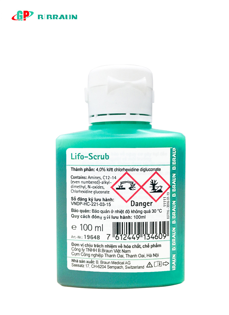 LIFO-SCRUB : Xà phòng chứa chất sát khuẩn CHLORHEXIDINE 4% dùng trong rữa tay phẩu thuật, Thường quy dùng tắm bệnh nhân trước phẫu thuật